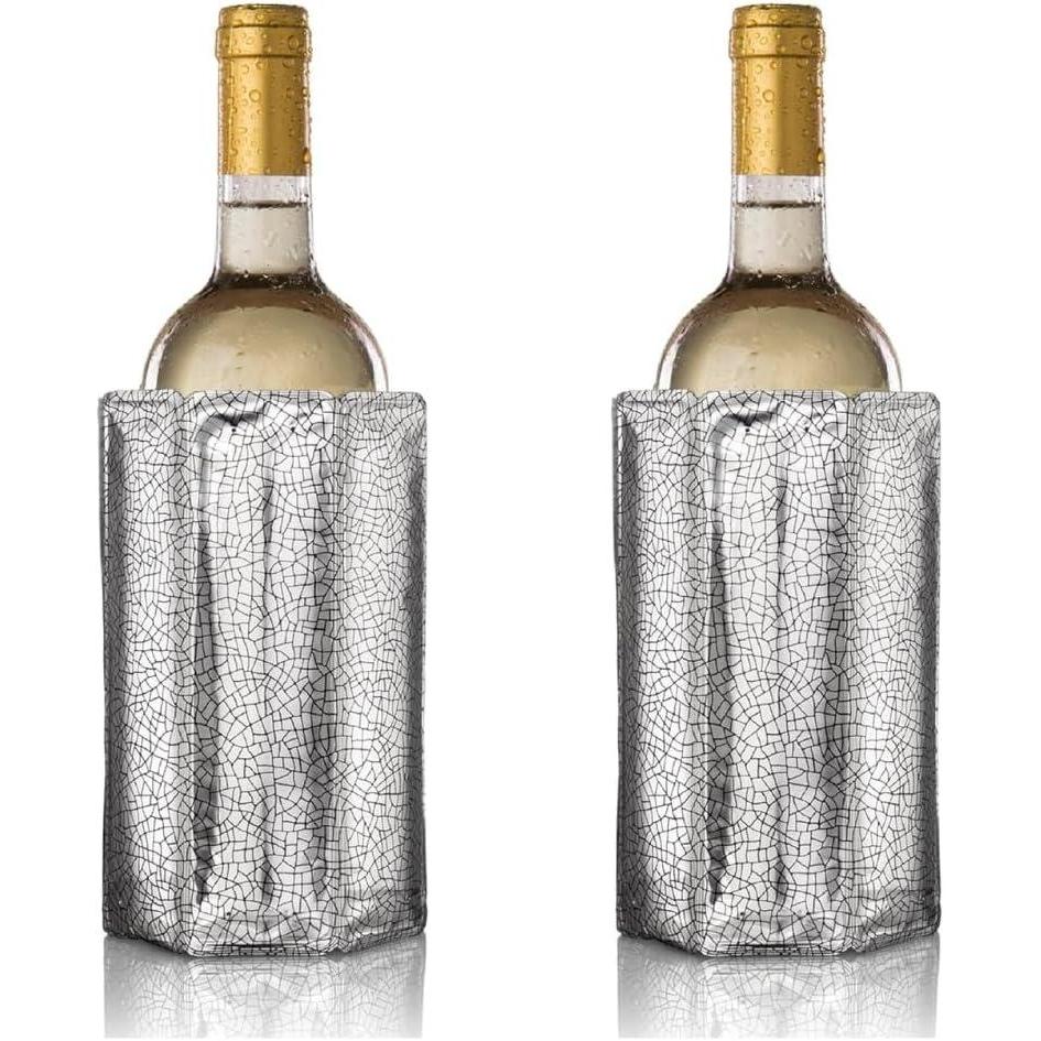 Vacu Vin Wine Cooler Sleeve – Platinum – Flexible Rapid Wine Bottle Chiller – Reusable Ice Pack Sleeve – Elegant & Portable – Fits 750ml Bottles – Keeps Wine Cold in Minutes(Silver - Set of 2)