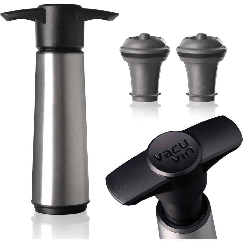 imageVacu Vin Wine Saver Stainless Steel Gift Box  Includes 1 Vacuum Pump ampamp 2 Stoppers  Preserve Wine Freshness  Elegant Wine Accessory Set2 Stoppers Giftbox