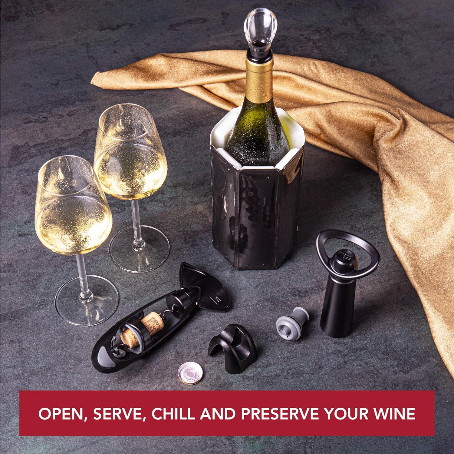 Vacu Vin Wine Set Original – 4pc Wine Must-Haves to Open, Serve, Chill and Preserve Your Wine – Includes Double Hinged Corkscrew – Active Cooler Wine – Wine Server Crystal and Bottle Stopper(6 pcs Original)