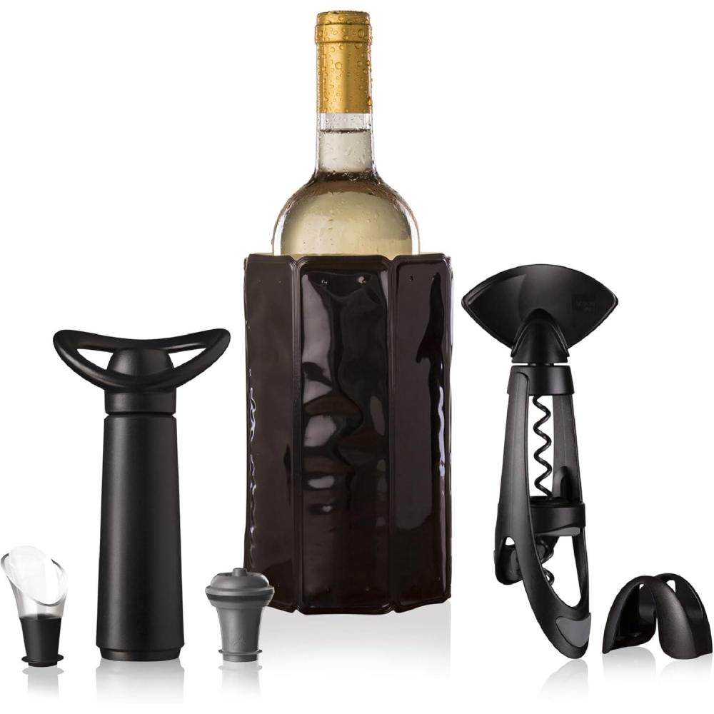 imageVacu Vin Wine Set Original  4pc Wine MustHaves to Open Serve Chill and Preserve Your Wine  Includes Double Hinged Corkscrew  Active Cooler Wine  Wine Server Crystal and Bottle Stopperstandard